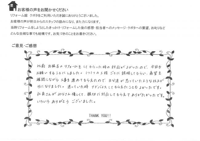 株式会社 クボタ 富士市・リフォーム会社/住宅の内装工事から増改築・水廻りリフォーム・床材ハガシまで手掛ける会社・塗床ハガシ・セラミックスタイルハガシ 床剥がし工事 | お客様の声